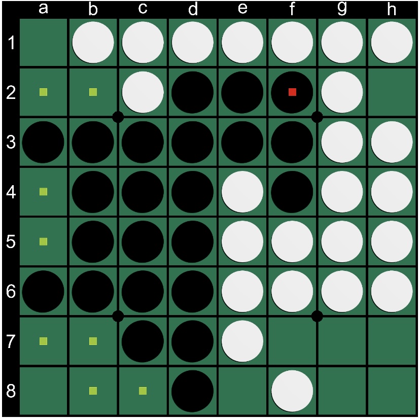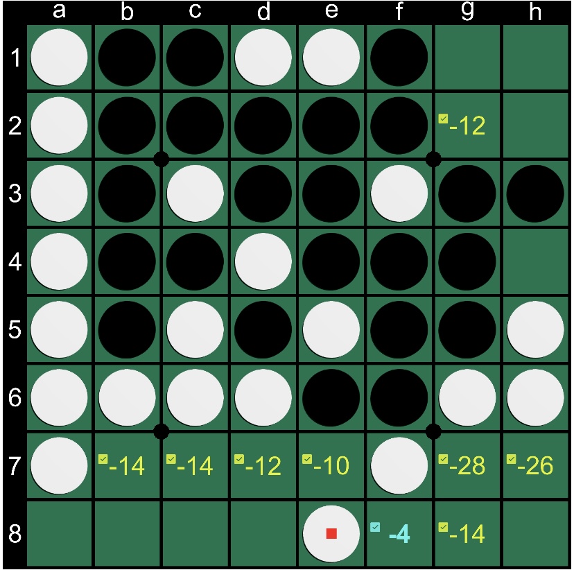 f8 → g8 で打たれても、左下の空きマスを活用することで、黒には粘りの手筋が存在していました。