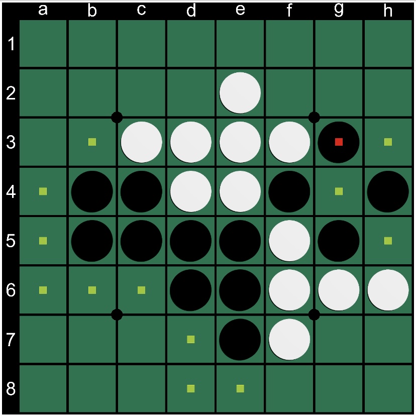g8 → f2 → h5 → h7 → g4 この手順で白が打ちやすくなります。