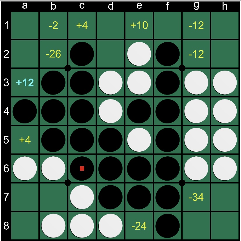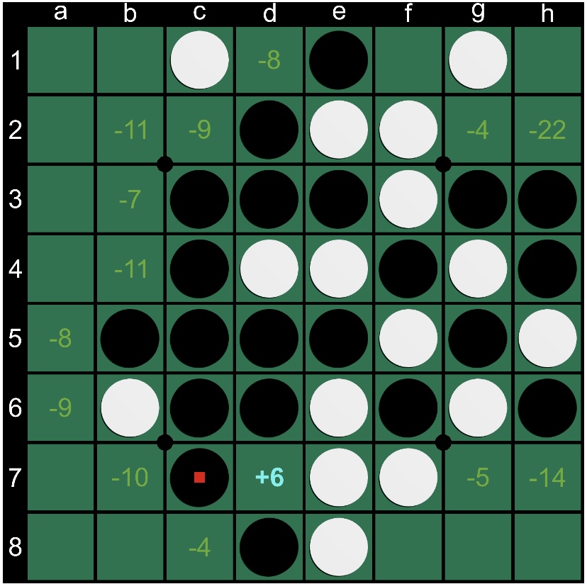 よって、b8に打つより、c7 → b4 → b6 と進めた方が、白が形を作りやすい展開になっていました。