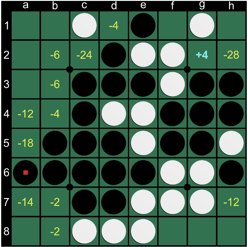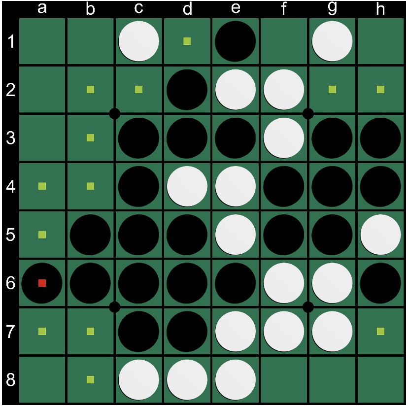 教訓:a5に打っても、次に黒はa7で取るのではなく、d2やe1やf1が選択肢として挙げられるので、そちらの手順をもっと慎重に考えるべきでした。