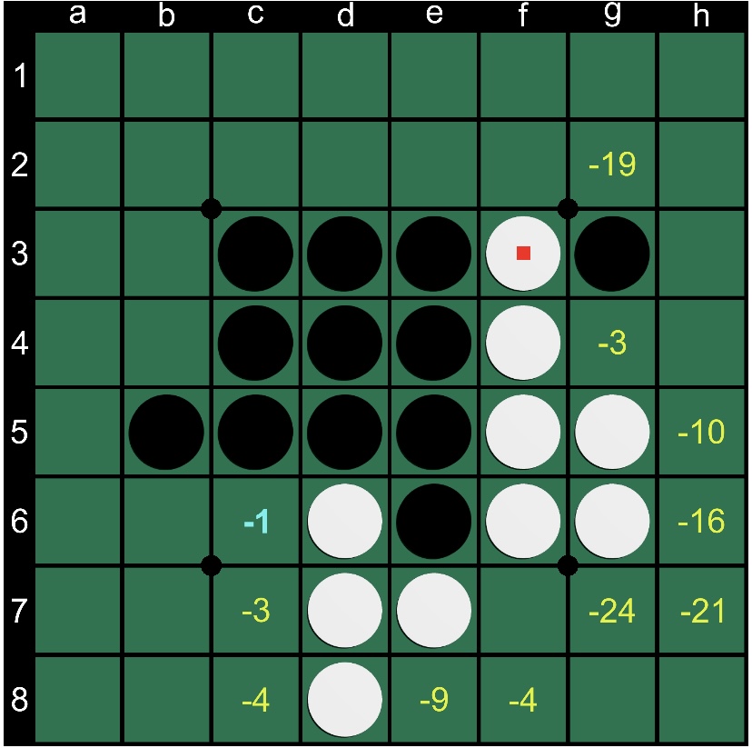 教訓:f7に打ったことで、次の黒e7が好手となり、白が徐々に打ちづらい展開になってしまいました。
